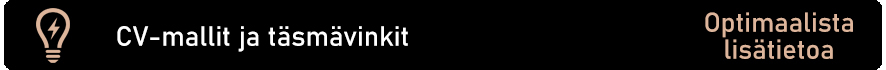 Rekrytoija useimmiten ensin silmäilee CV:n ja nopealla silmäilyllä poimii sieltä ydinosaamisen ja kokemuksen. Tämä hetki usein ratkaisee sen, miten paljon hän jatkossa käyttää aikaa asiakirjojen tarkempaan tutkailuun. Vakuuttavassa CV:ssä on siis oltava heti näkyvillä haettavan tehtävän kannalta relevantti osaaminen ja kokemus. Toimiva CV kokoaa selkeään ja ytimekkääseen muotoon perustietosi, ydinosaamisesi, historiasi ja aikaansaannoksesi. Hyvä CV herättää rekrytoijan kiinnostuksen ja vakuuttaa hänet myös sinun kiinnostuksestasi kyseistä tehtävää ja organisaatiota kohtaan – räätälöi ja kohdista ansioluettelosi yksityiskohdat siis aina haettavan paikan mukaan! Perinteisen CV:n lisäksi voit tuoda samoja asioita esiin esimerkisi videon tai käyntikortin muodossa. Käyntikorttimuotoinen mini-CV on LinkedInissä verkostoitumisen lisäksi näppärä väline jättää muistijälki ja jotain kättä pidempää erilaisissa kohtaamisissa esim. messuilla ja muissa verkostoitumistilaisuuksissa. Alla olevien bannerien kautta löydät tarkempia vinkkejä vakuuttavan CV:n laatimiseen sekä runsaasti erilaisia esimerkkejä korkeakoulutetun työnhakijan CV:stä, joita kannattaa käyttää insipiraation ja ideoiden lähteenä oman CV:n hiomisessa entistä ehommaksi.
