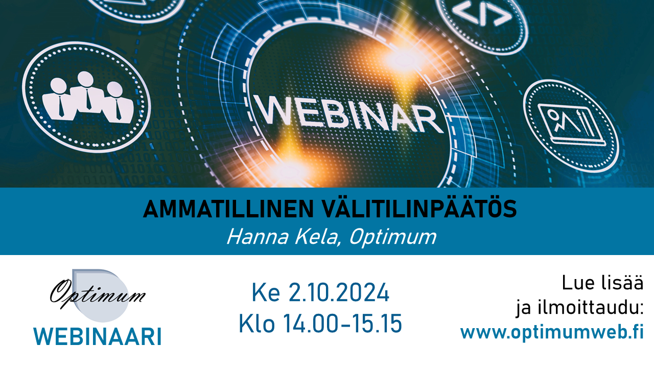 Ammatillinen muutos on vahvasti identiteettityötä. Tässä webinaarissa avaamme uramuutokseen liittyviä ilmiöitä, jotka on hyvä tunnistaa. Työnhakutilanteessa ja uutta urasuuntaa hakiessa on hyötyä muutososaamisesta. Muutostilanne tarjoaa erinomaisen kohdan ammatilliselle välitilinpäätökselle sekä oman urasuunnan tarkistamiselle.