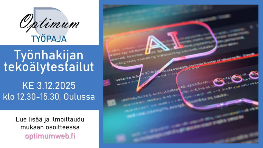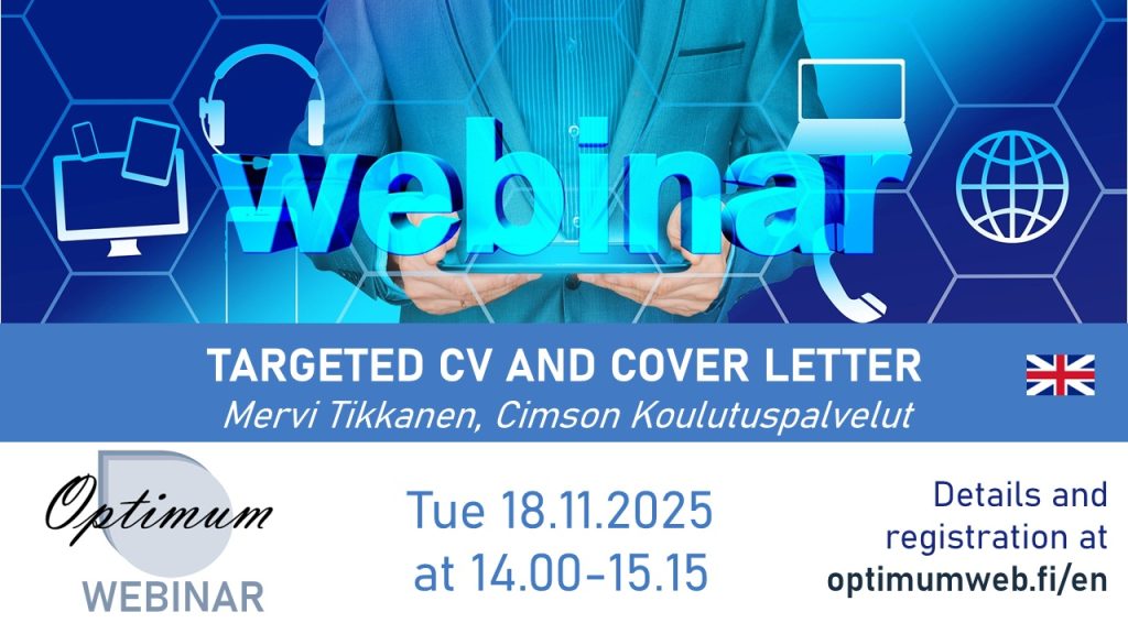 Löydät tältä sivulta Optimumin syyskauden 2025 tapahtumat. Tulossa on jälleen runsas valikoima ura- ja työelämäsisältöjä! Saat tiedon tulevista tapahtumistamme kätevimmin uutiskirjeemme ja somekanaviemme kautta.