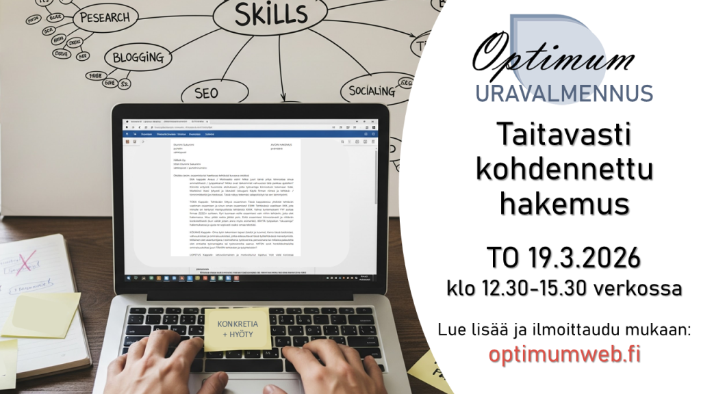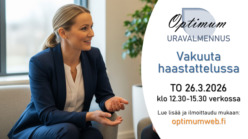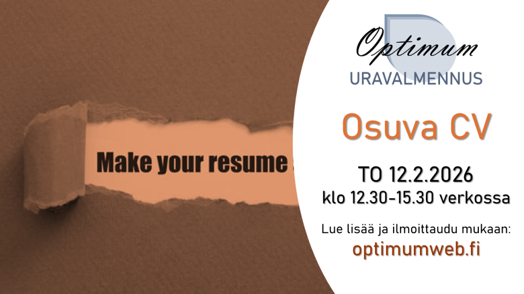 Löydät alta helmi-maaliskuun tapahtumamme! Tulossa on jälleen runsas valikoima ura- ja työelämäsisältöjä! Loppukevään ja alkukesän ohjelman julkaisemme alkuvuoden aikana. Saat tiedon tulevista tapahtumistamme kätevimmin uutiskirjeemme ja somekanaviemme kautta.