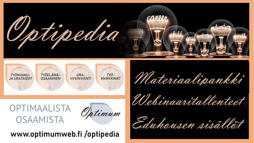 Hoksaathan, että tapahtumien ollessa tauolla käytössäsi ovat niin Optipedian laaja materiaalipankki kuin lukuisat webinaaritallenteemmekin.
